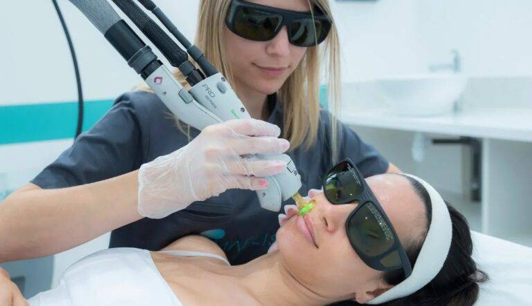 Par ailleurs, toute personne présente dans la salle de traitement doit porter des lunettes de protection spécifiques pour protéger les yeux des rayons laser.